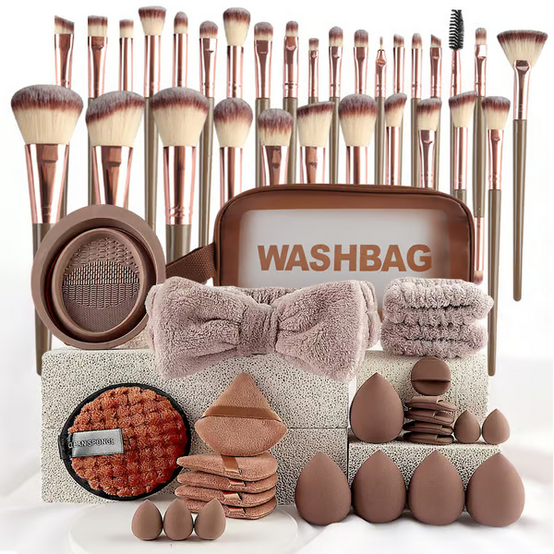 Sale ending in💄 Comprehensive Beauty Toolkit: This 56-piece makeup brush and sponge set includes everything you need for a complete beauty routine—from face washing tools to essential makeup applicators. Designed for all skin types, it ensures you’re fully equipped for both daily skincare and flawless makeup application.